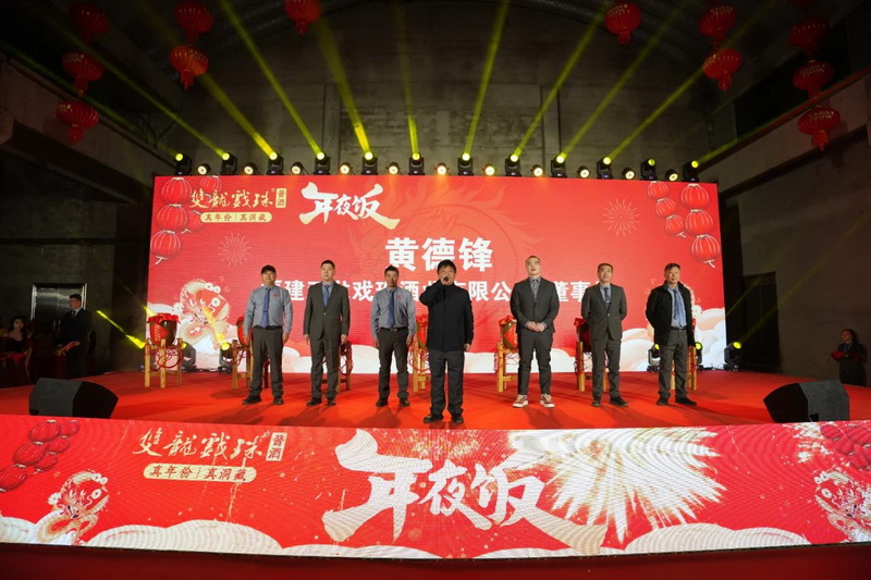 雙龍戲珠酒業董事長黃德鋒在致辭中對全體雙龍人一年來的辛勤付出表示感謝,并向大家致以新年的美好祝愿。雙龍戲珠酒業發展到現在是全體員工一起努力的結果,今晚在桐源基地舉辦年夜飯活動,與大家一同見證雙龍戲珠發展的成果。